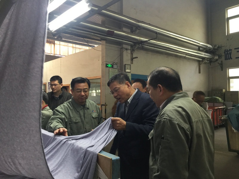 徐紀(jì)平副秘書長(zhǎng)等領(lǐng)導(dǎo)到染部車間現(xiàn)場(chǎng),實(shí)地察看了公司生產(chǎn)現(xiàn)場(chǎng),向公司領(lǐng)導(dǎo)了解了公司今年經(jīng)營(yíng)情況和轉(zhuǎn)型升級(jí)工作。莫總向調(diào)研組領(lǐng)導(dǎo)介紹了公司基本情況和近年來(lái)公司推進(jìn)轉(zhuǎn)型升級(jí)工作,特別是今年實(shí)施的淘汰落后產(chǎn)能實(shí)施智能化生產(chǎn)技改項(xiàng)目。調(diào)研組領(lǐng)導(dǎo)在車間里仔細(xì)察看了公司引進(jìn)的意大利貝利尼公司生產(chǎn)的超低浴比溢流多功能生態(tài)勻染染色機(jī),以及中央控制室,染料助劑自動(dòng)化輸送系統(tǒng),對(duì)公司實(shí)施智能化生產(chǎn)技改的轉(zhuǎn)型升級(jí)舉措給予高度肯定,鼓勵(lì)公司領(lǐng)導(dǎo)進(jìn)一步通過轉(zhuǎn)型升級(jí),推動(dòng)企業(yè)向信息化、自動(dòng)化、智能化方向發(fā)展,實(shí)現(xiàn)節(jié)能減排,減員增效,提高企業(yè)競(jìng)爭(zhēng)力,促進(jìn)傳統(tǒng)企業(yè)的新發(fā)展。