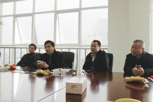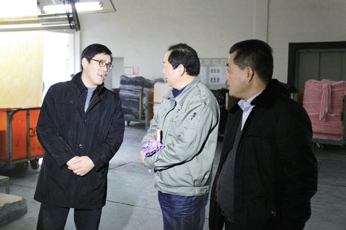 圖為副市長吳炳泉(左1)公司副總經理莫榮明(左2)鳳鳴街道書記葛柏金(右1)參觀車間