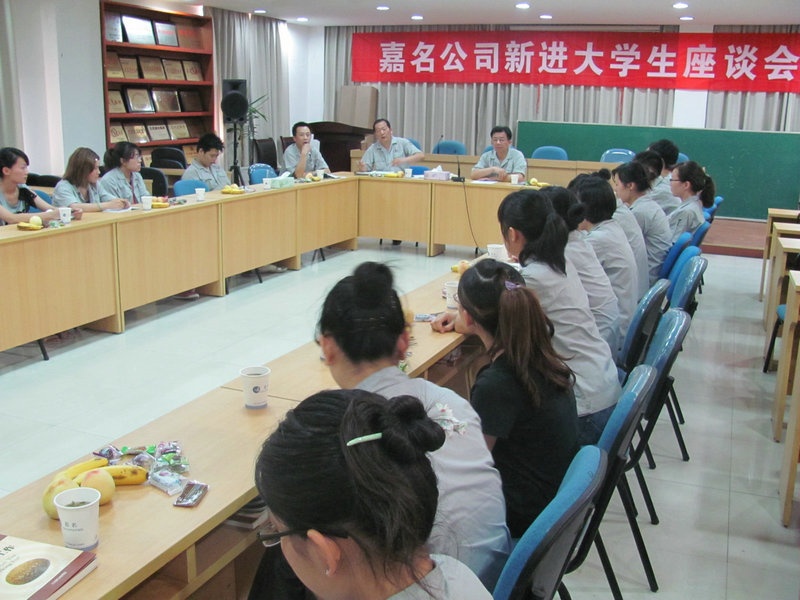 會上,大學生們暢談了自己到嘉名公司以來學習、工作的一些感想和體會,并就公司在生產(chǎn)管理、崗位技能培訓,企業(yè)文化建設、住宿和就餐等方面暢談了許多意見和建議。如生產(chǎn)統(tǒng)籌辦吳朋程提出了目前染整事業(yè)部的周轉布車太少,影響生產(chǎn);化驗室宋建會提出了打樣人員不能只求產(chǎn)量考核,而應把效率和質量同時列入績效考核內容;還有的提出了公司應進一步做好員工宿舍、食堂膳食的后勤管理等。莫總對大學生們提出的問題和建議表示贊賞,并當場進行了對話溝通。最后,莫總對參加會議的大學生們提出了“成為六個榜樣”的希望:一是成為努力學習,敬業(yè)愛崗的榜樣;二是成為改革創(chuàng)新,奮發(fā)有為的榜樣;三是成為技術過硬,管理有方的榜樣;四是成為遵章守紀,思想領先的榜樣;五是成為忠誠企業(yè),團結協(xié)作的榜樣;六是成為諫言獻策,多提合理化建議的榜樣。